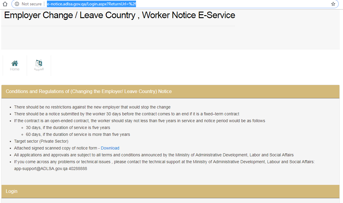 1. Now to change jobs go to ministry website www.e-notice.adlsa.gov.qa